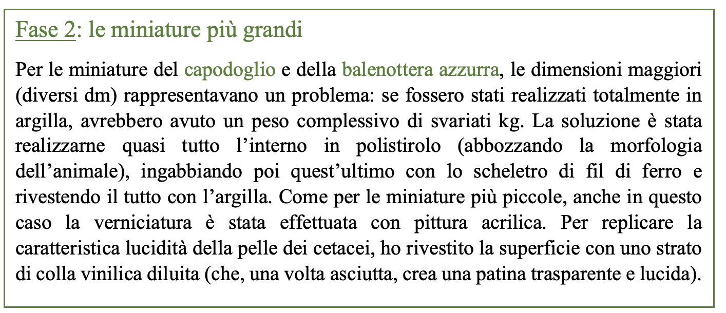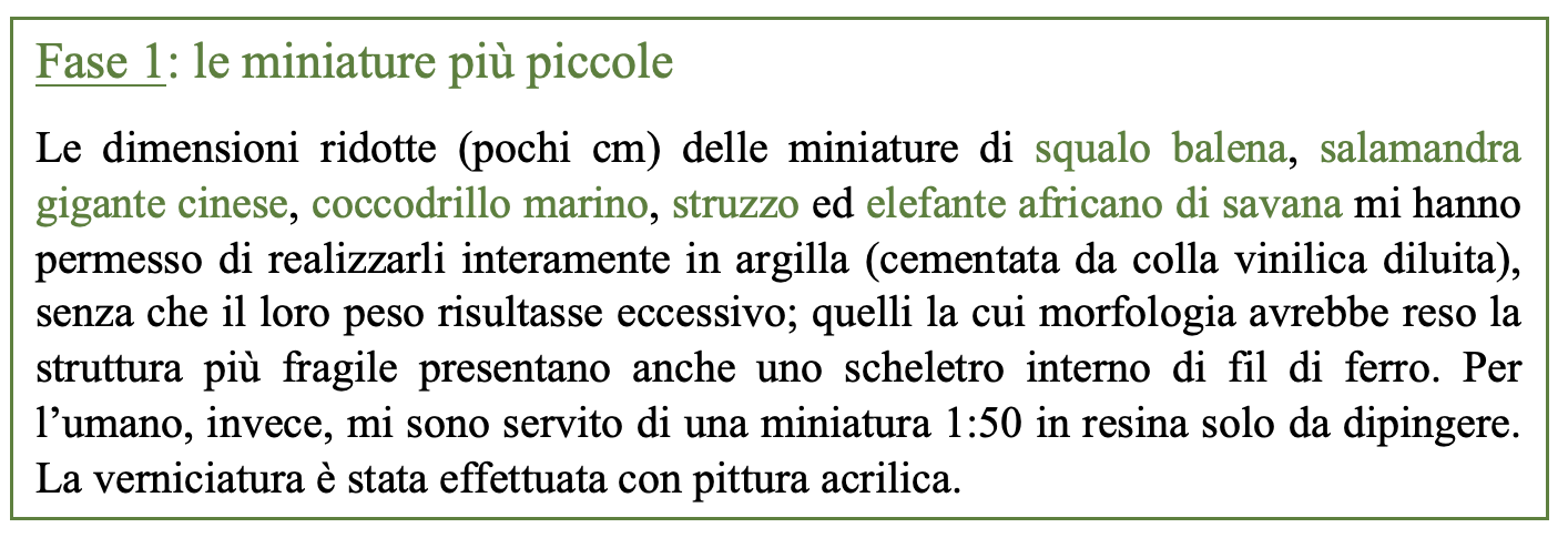 Prima di concludere, una piccola precisazione: le miniature della balenottera azzurra, dell’elefante africano di savana e del coccodrillo marino rappresentano gli esemplari dalle dimensioni massime mai registrate, mentre quelli della salamandra gigante cinese, dello squalo balena, dello struzzo e del capodoglio sono realizzati basandosi sulle dimensioni medie della specie (o di uno solo dei due sessi).