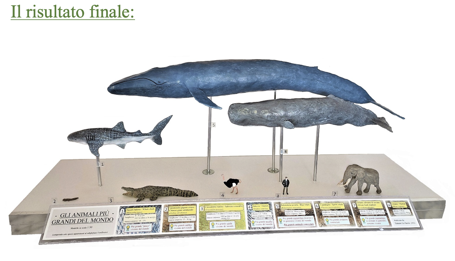 Ecco a voi una foto del modello “GLI ANIMALI PIÙ GRANDI DEL MONDO”, appena ultimato. Quest’immagine è stata inserita nell’articolo a conferma della nostra tesi iniziale, secondo cui la tridimensionalità sarebbe da preferire alla bidimensionalità; infatti, assicuro personalmente il lettore che il modello rende decisamente di più se osservato dal vivo (in caso contrario, si perde lo scopo stesso per cui esso è stato realizzato) e lo invito a non perdersi questa esperienza, tornando al nostro Museo per far visita a questo nuovo arrivo!