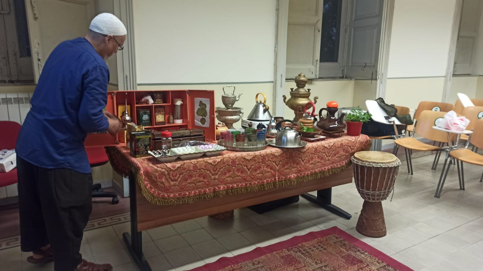 La serata è stata allietata dalla degustazione di un profumato tè marocchino che è stato offerto ai visitatori, con una coreografica araba particolarmente apprezzata, dall’associazione onlus “Periferie Vive – Salette di Catania” rappresentata dal Prof.re Alfredo Petralia e dal mediatore culturale Abdul.
